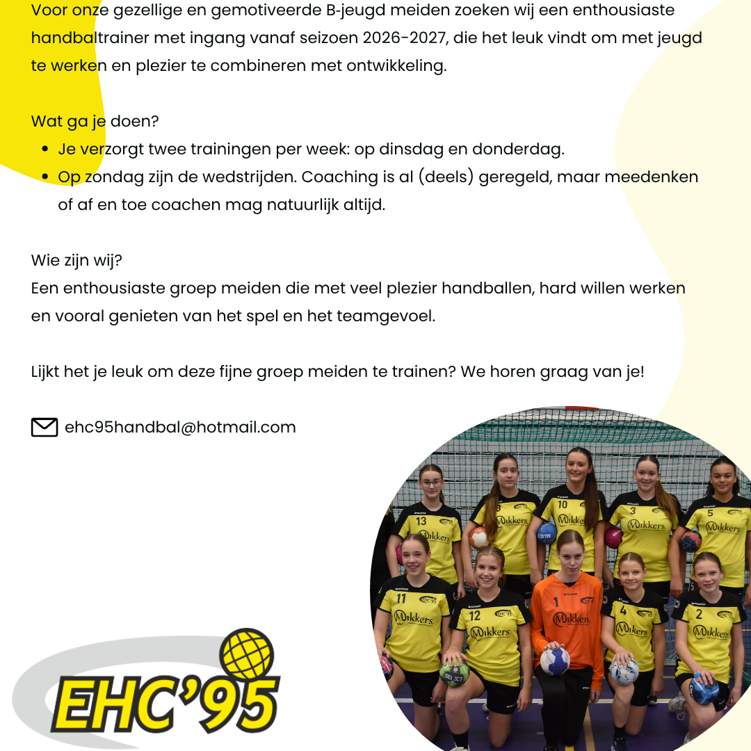 Heb jij passie voor handbal, weet je een team te motiveren en wil je bouwen aan prestaties én teamgevoel? Dan zijn wij op zoek naar jou!